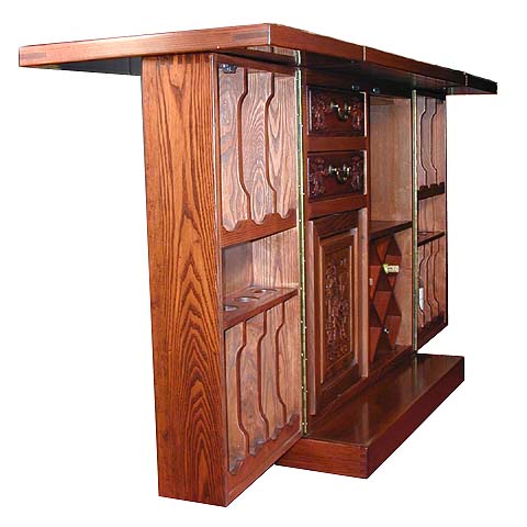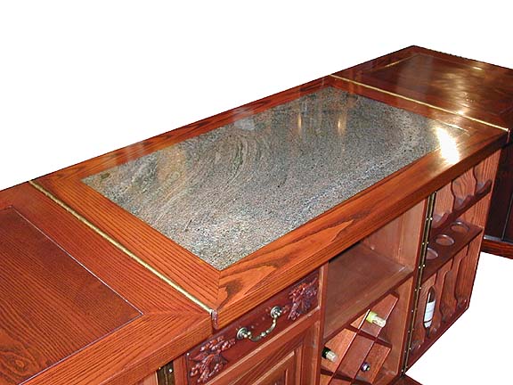 Exquisite light stained red oak folding bar with inlaid granite top, slots
