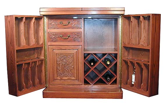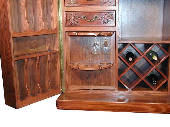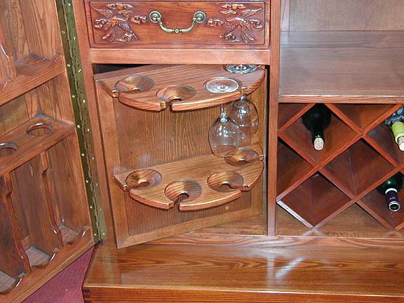 for nineteen bottles of wine or spirits, a rotating wine glass carrier, two