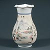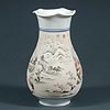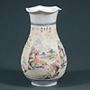 Attractive tulip-shaped white porcelain jar has four distinct hand-painted pictures featuring Korean country scenes in the summer, fall, winter, and spring. Style