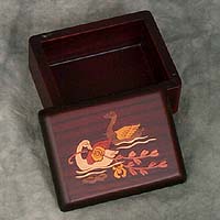 Two inlaid ducks on a pond adorn the lid of this beautiful wood box which is finished in a lustrous dark lacquer. Style LBX022
