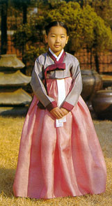 Upon arrival in their hometowns, families get together and start the festivities. In the days before the actual day of Seol-nal generally the women prepare the foods that will be both eaten and used during the ancestral rites. The difference between the food for Chuseok and Seol-nal is that rice is served on the former and ddeok, rice cakes, in various forms are served on Seol-nal. In the morning family members don traditional Korean clothing Han-bok (shown at right), although this is happening less and less these days and in fact many people don't even have them. Then they perform the ancestor worship ceremony, Cha-rye, which consists of all the foods that were previously prepared, being placed on a table, which serves as an altar, and is in front of a byeong-pung (a large folding screen). The foods are placed in a predetermined order and must include many foods traditionally used for the ceremony but also include those foods the deceased liked. The idea is to offer plenty of nourishment to the ancestors so they have energy to bless their descendents.The ceremony itself is conducted by the head of the family who is usually the father if he is still relatively lively and is still considered to be running the family, or the eldest son if the father has relinquished control of the family to him due to age. The head of the family lights incense, pours some clear liquor into a glass on the table and then bows twice in front of it thereby commencing the ceremony and signaling the whole family to bow twice. Then the Chuk-mun, which is a list of the ancestors' names, is read aloud. Then one by one, the men in the family (only men participate in this ceremony), usually the father and sons, make offerings of liquor and bow twice after which the foods are offered to the ancestors by placing a spoon in a bowl of rice with the handle pointing to the East while the family prays and lowers their heads. Three spoonfuls of broth are then offered to the ancestors and the ceremony ends with all the members bowing twice. After which, the food is shared and the list of names, the Chuk-mun, is burned. After the ancestor worship ceremony, the younger members of the family bow to the elders in a practice called se-be, which is the first greeting to the elders of the year, and a way for the younger family members to show their respect to the elders, and receive a little money for each bow. At 10-20,000 won (about $10-$20) per bow a child can get up to a few hundred thousand won ($200) if there is a big family during the se-be ritual and this, naturally, makes them quite happy.Activities during the Seol-nal holidays used to include a lot of kite flying, playing a traditional Korean game called Yut, or playing with tops, but nowadays there seems to be much more computer game playing than anything else.