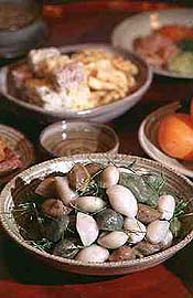 Seol-nal, the Lunar New Year, is arguably the most important holiday in Korea. It's actually a toss up between this and Chuseok, which is the harvest festival and happens in late fall. In any case, they are the two most important holidays. While many Koreans do celebrate the solar New Year, it is more of a one day affair and people tend to do more pure celebratory activities such as meeting friends, going to the center of the city and shooting fireworks at midnight, or climbing a mountain or going to the East coast to see the first sunrise of the New Year. While on Seol-nal many people perform ancestor worship ceremonies or visit family in their hometown. The tradition in fact generally sees a large part of the population travel to their ancestral homes, which frequently are outside of the city of Seoul in the countryside, so there is a mass exodus of people leaving the city the night before, or the first day of the Seol-nal holiday and then for three days families gather, eat Song-pyeon, a type of rice cake which is traditionally eaten on Seol-nal (shown in the photo above), and ddeok-guk, a rice cake soup.The idea of the 'hometown' is somewhat different in Korea than that in the West and so does not necessarily mean the place where one was born but signifies the hometown of one's ancestors or family origin. As soon as the holiday starts and at the earliest possible opportunity, families whose hometown lies away from their current residence travel to their hometowns to meet up with other displaced family members. The number of people that travel are so great during this period, that the roads are choked with traffic for several days at the beginning and ends of the festival, making what is usually a 4 hour trip from Seoul to the southern city of Busan by car a 12 hour marathon. Since Seoul is the economic center of Korea many have moved there for work or study and so the exodus usually is out of Seoul towards the country at the beginning of the festival and back into Seoul near the end of the holiday. Currently about half the population of the country live in the Seoul National Capital Area.This year (2008) Seol-nal falls on Thursday, February 7, and the 6th and the 8th are also holidays. That means many people will travel to their hometowns the night of the 5th, or the morning of the 6th and probably remain there until Saturday or Sunday the 10th and on those days the traffic will be horrendous. Downtown Seoul, on the other hand, will be as quiet as a ghost town (something that doesn't happen very often) with many of the shops closed and a great number of the people gone, or busy in their homes.